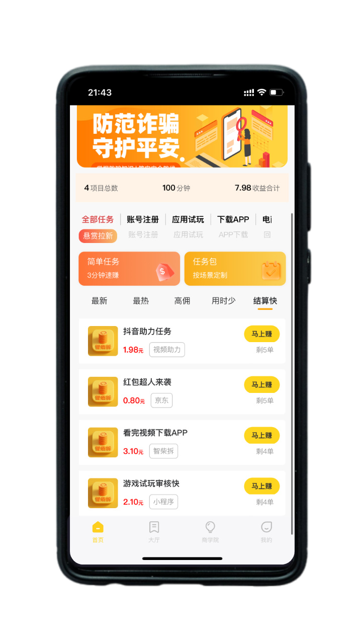 覆盖调研问卷、APP 试玩、创意互动等多元任务,适配学生、上班族等不同群体,单任务操作步骤简化至 3 步内,新手 1 分钟即可上手,且所有任务经合规审核,杜绝低俗内容,打造绿色任务环境。